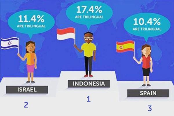 – Indonesia juara dunia dalam berbahasa multilingual. Rata-rata orangnya bisa 3 bahasa.