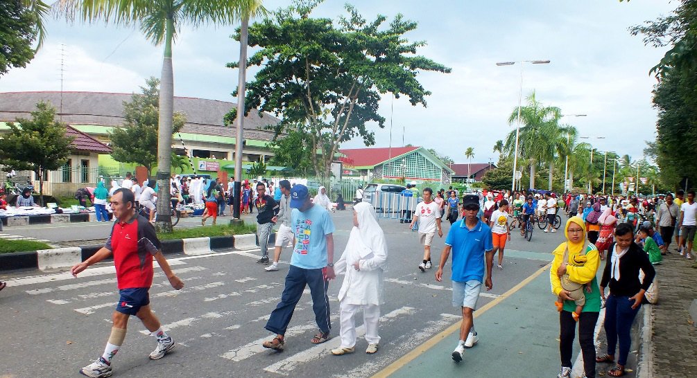 Since 2009, Balikpapan enacted Car Free Day every Sunday 6.00-9.00 in Merdeka Square. Citizens are free to jog, aerobics, cycling, skateboarding, soccer, baseball, until martial arts, without any vehicles interrupting. Merdeka Square consists of 3 soccer fields, 1 baseball field, 1 jogging track, 1 cycling track. There are also swimming pool, bowling, basketball and volleyball nearby. All of them lies nearby the beautiful coast.