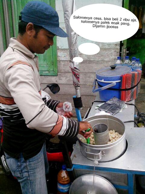 Contoh kalimat : “asnah belikan mamak Ote-ote di tempatnya bule parmi”