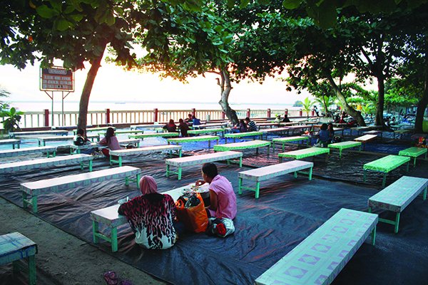 Para pedagang kaki lima menjual aneka kuliner dan menyiapkan meja serta tikar yang menghadap ke pantai. Sedangkan anak-anak muda biasanya menyukai minuman dan kudapan yang dijajakan penjual diatas gerobak. Minuman tradisional seperti sekoteng, ronde, kopi, hingga cappuccino dan jus buah bisa diperoleh.
